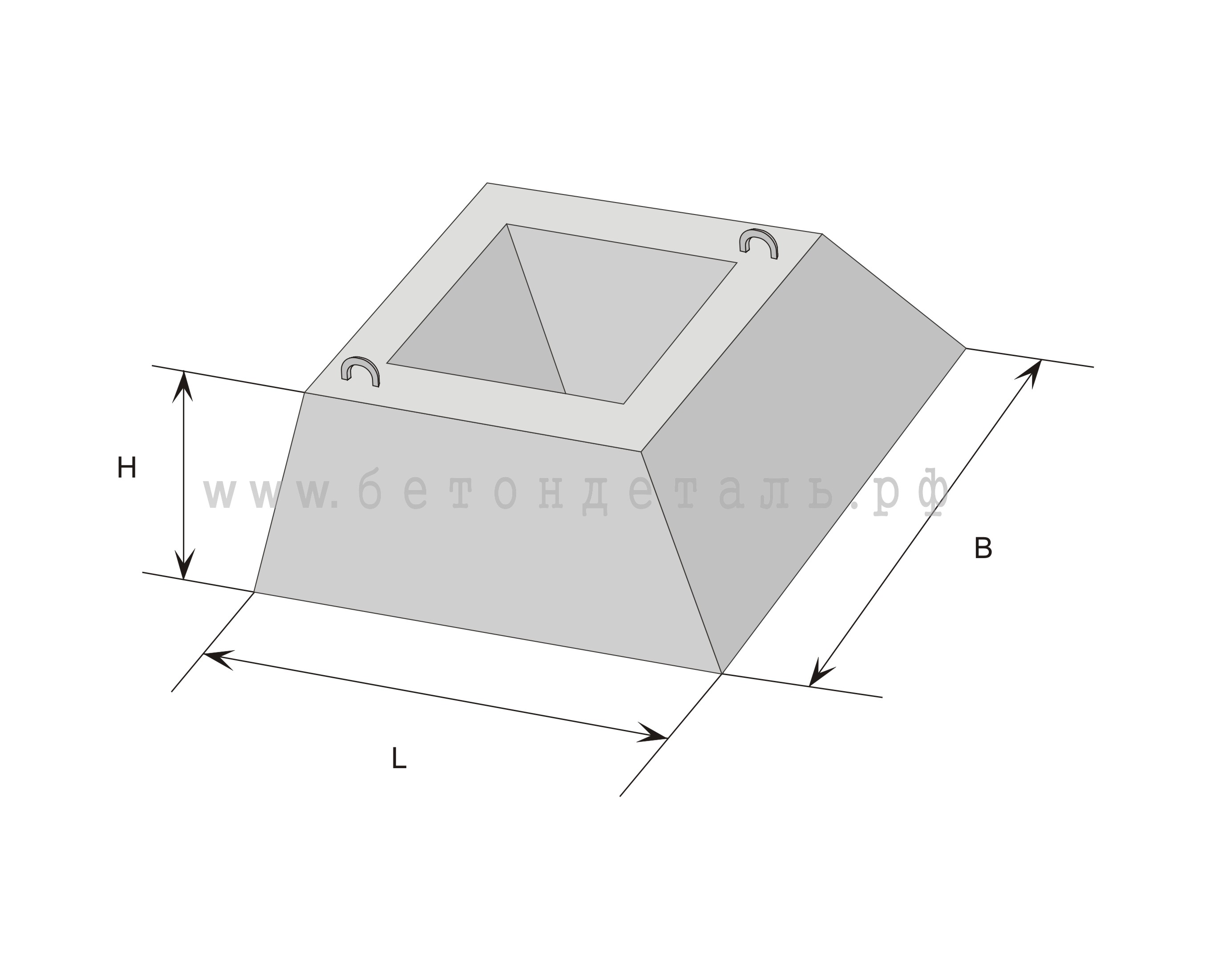 Сборный фундамент имеет высоту 900 мм, при этом, глубина стакана - 650 мм. Значительная глубина позволяет надежно зафиксировать плиты в стакане. Прочный бетон фундамента (класса В15) не позволяет конструкции разрушаться на протяжении достаточно долгого времени.