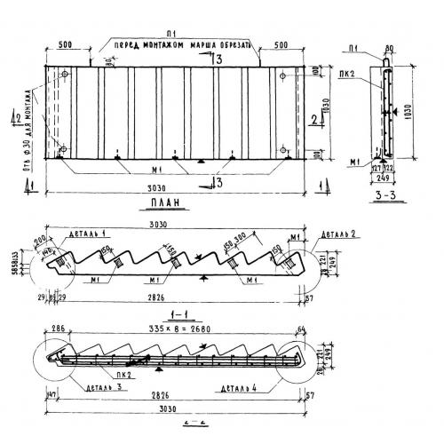 ЛМ 30-11 Лестничные марши без фризовых ступеней по серии 1.151-4.